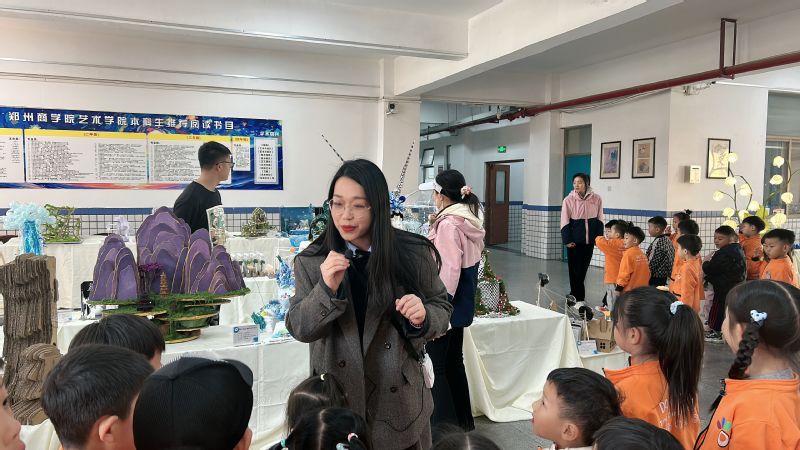 艺术学院周明珠老师化身 “艺术导游”,用生动活泼、通俗易懂的语言,为小朋友们讲解立体构成的知识和作品。