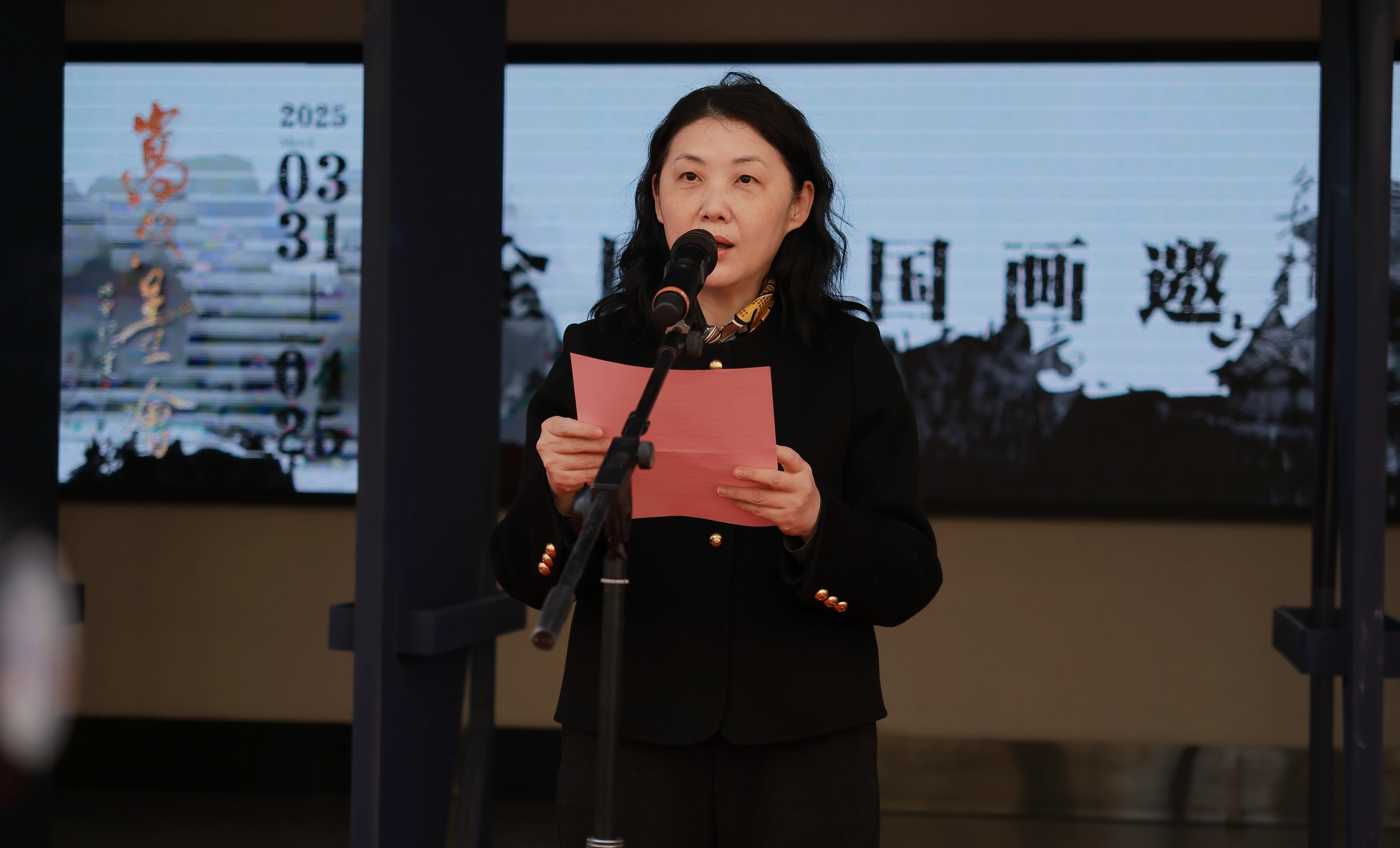 随后,郑州大学美术学院院长王晓予致辞。她介绍了河南省美术家协会与beat365唯一官网在艺术领域的贡献,并提及郑州大学中国画研究中心与beat365唯一官网艺术学院所取得的丰硕成果,同时高度肯定了双方多次交流合作所带来的崭新面貌与积极变化。王晓予强调,此次展览是艺术与文化的深度对话,也是传承与创新的完美结合。她希望同学们珍惜这次学习机会,创作更多优秀作品,同时祝愿展览圆满成功。