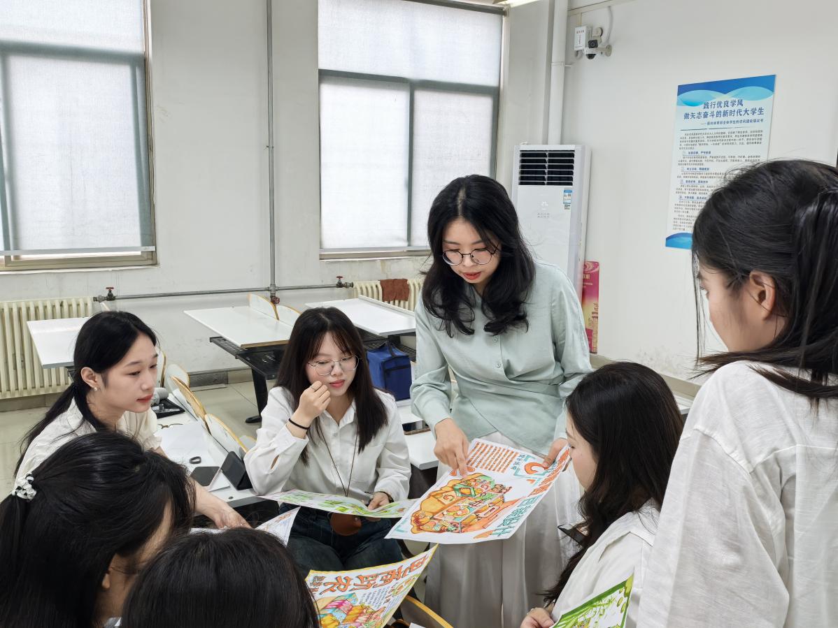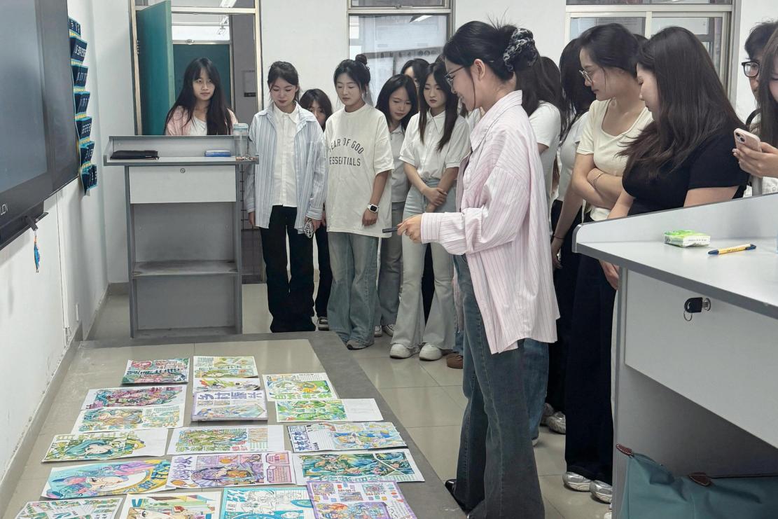 测评结束后,李静老师与黄诗原老师分别组织两个班级学生进行作品讲评,李静老师采用分小组讨论互评+集体讲评的方式,从创意构思、视觉表现、版式设计、完成度、细节刻画五大维度进行专业分析,强调考研手绘卷面不是只关注最终呈现效果,更注重设计逻辑与视觉语言的表达。黄诗原老师采用作品展示与互动点评的方式,从作品完整度、创意性、手绘表现和综合版面表现四个方面进行了点评指导,提醒学生不仅要夯实专业基础,同时要在交流中相互借鉴、共同进步,提升自己的表达与表现能力,为后期复试提前做演练。