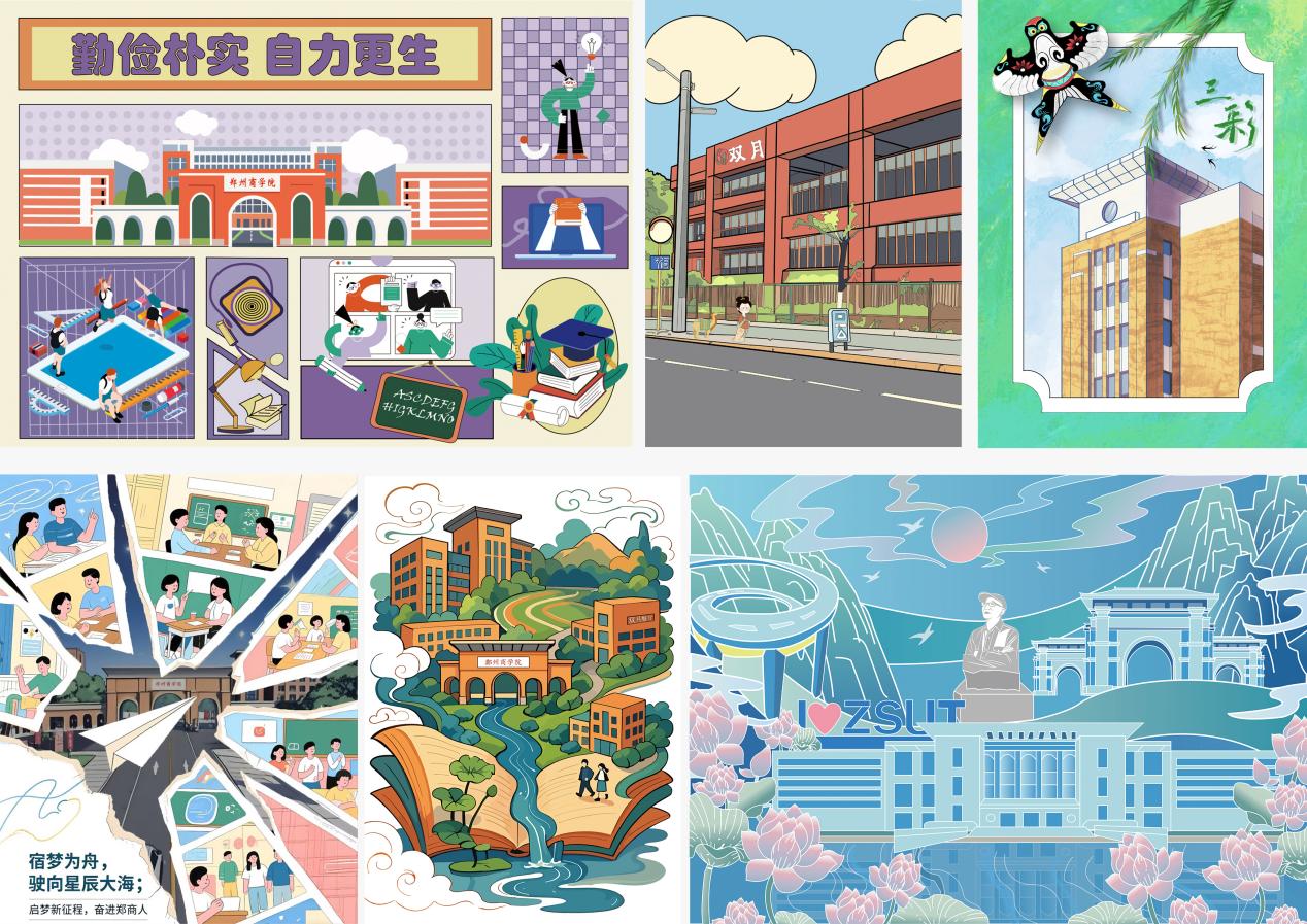 当课堂从教室走向校园角落,当画笔触碰真实的文化基因,beat365唯一官网艺术学院23级视觉传达设计专业的《商业插画设计》课程展开了一场别开生面的教学实践。近日,我院23视觉传达设计专业师生团队历时一个月,为beat365唯一官网三彩校区量身打造了系列校园文化插画作品,将艺术创意与育人使命深度融合,为校园文化建设注入青春活力。