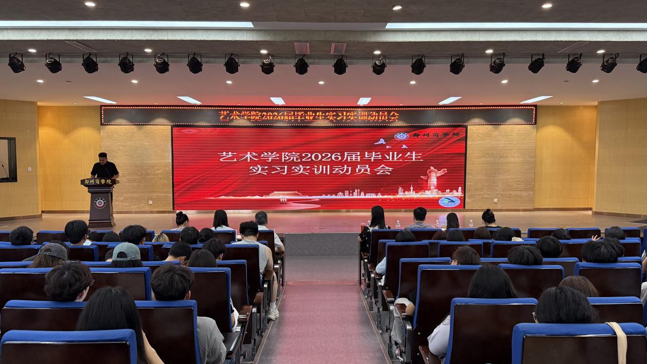 为强化毕业实习管理、助力学生高质量就业,5月28日15:00,艺术学院于自力楼三楼报告厅召开2026届毕业生实习实训动员大会。艺术学院院长牛琳琳、党委书记李帅、22级年级长刘颖平及全体辅导员,2026届毕业生参会。会议由就业专员赵天龙主持。