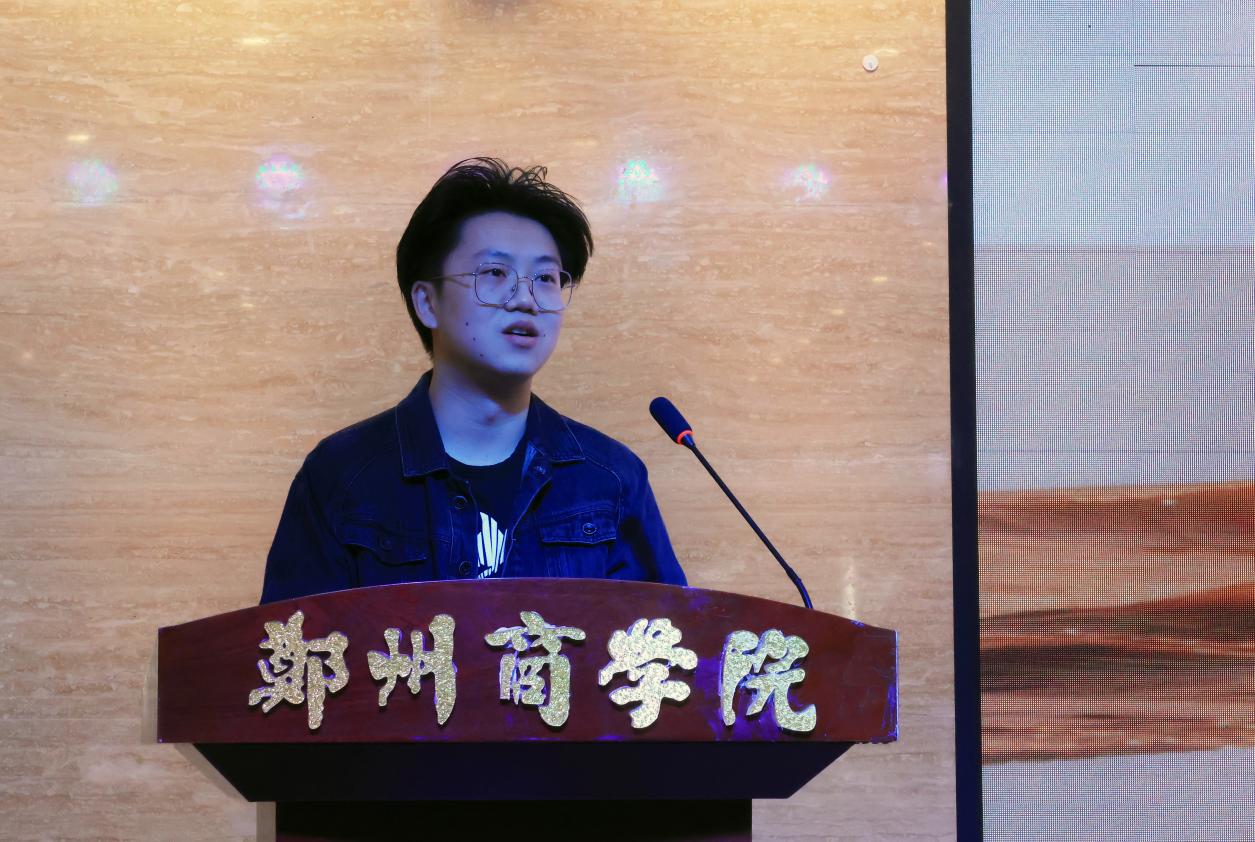 指导老师代表熊飞在发言中讲述了指导学生参赛的过程,分享了如何用艺术语言讲述黄河故事。生动的向同学们传达了艺术创作不仅要追求美感,更要传递社会责任的设计理念。并表示未来会持续引导学生在创作中关注生态议题。