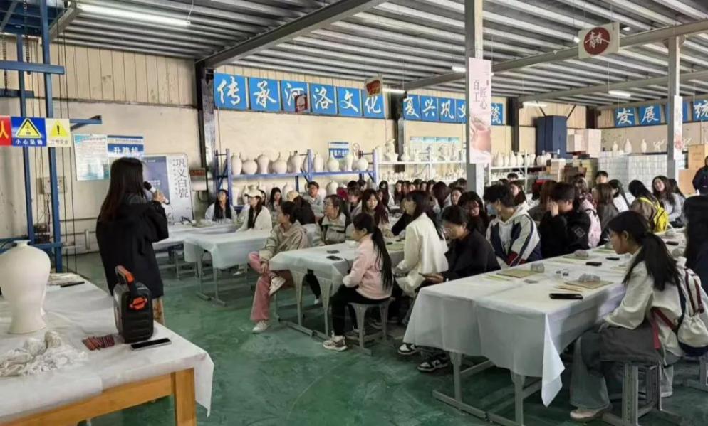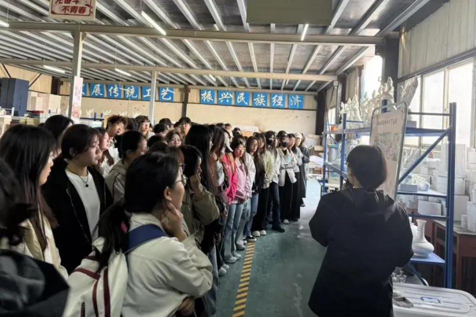 4月12日至13日,产品设计专业学生走进巩义市龙福手工艺品有限公司,由企业总经理韩红立先生和陶艺师带领学生进行企业参观与陶瓷工艺学习。通过陶艺师的现场讲解与示范,学生们依次参观原料车间、拉坯成型区、施釉工坊及高温窑炉,近距离观察瓷泥经修坯、施釉、1320℃淬炼成器的全过程,系统了解传统陶瓷工艺的完整制作流程。同时,围绕“传统与现代融合”主题,聚焦现代设计与传统工艺的结合。学生在陶艺师指导下开展捏塑创作,根据自己绘制的设计草图进行设计创新,既承载巩义白瓷温润质感,又注入模块化、用户场景化等现代设计思维。