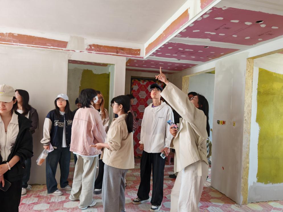 在施工工地实训方面,环设专业的指导教师带领学生深入巩义市施工场地,观摩“放线-水电预埋-吊顶龙骨-墙面批荡-主材安装”的流水作业,详细讲解施工过程中遇到的各种问题,学生亲手操作激光水平仪放线,亲身感受到“现场是最好的设计课堂”。