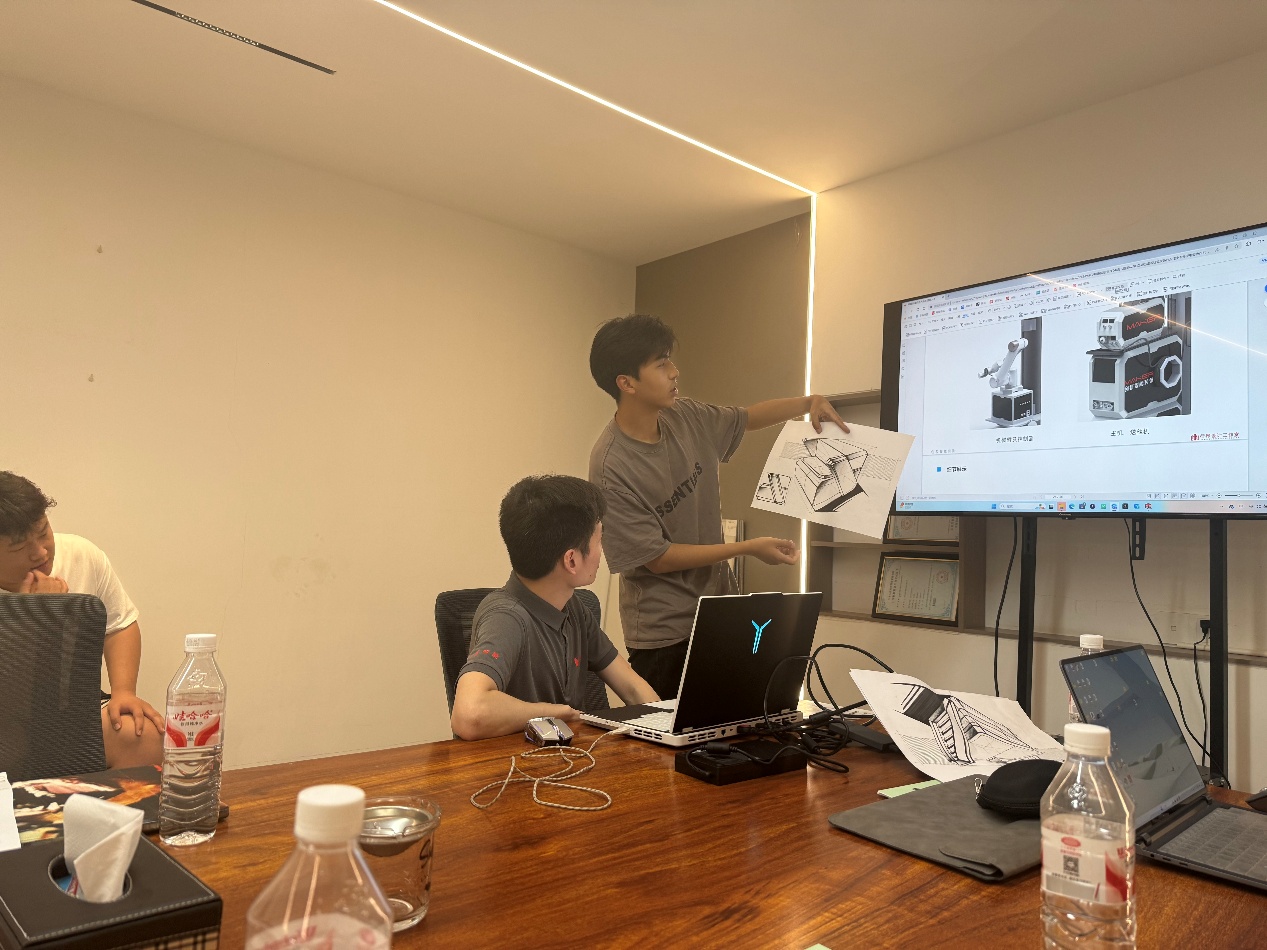 行程的最后,技术人员与老师和同学们在技术部会议室开展交流会议。会上,技术人员对项目产品类型、结构和工艺做出了详细讲解,几位同学们向技术人员讲解自己的设计方案。通过此次交流会,同学们更加了解公司产品需求,也通过方案设计讲解提升了设计表达能力。