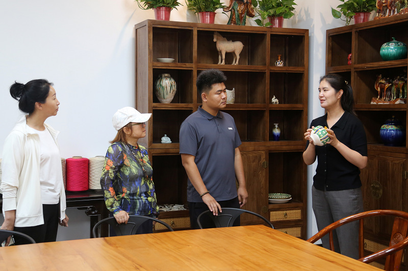 下午,来宾一行先后参观学校校史馆、学生事务服务中心众创空间。随后重点参观了艺术学院毕业设计展及产教融合工作室。期间,双方围绕 “毕业设计成果转化路径”“文创产品市场化开发模式” 展开深度研讨。并对融入永乐宫壁画元素的学生设计作品、数字化文创研发成果及校企联合开发的文旅产品原型给予高度评价。