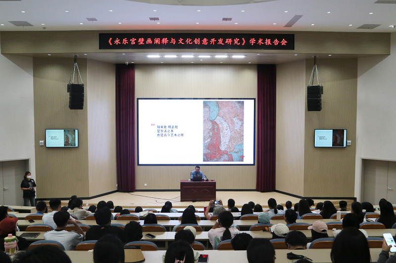 6月13日上午,《永乐宫壁画阐释与文化创意开发研究》专题学术报告会在beat365信工大楼报告厅举行。本次活动由艺术学院院长牛琳琳主持,特别邀请山西探晋文化科技有限公司总经理冀以清主讲,山西芮城县文旅局、文化企业代表以及学院师生等200余人参加。