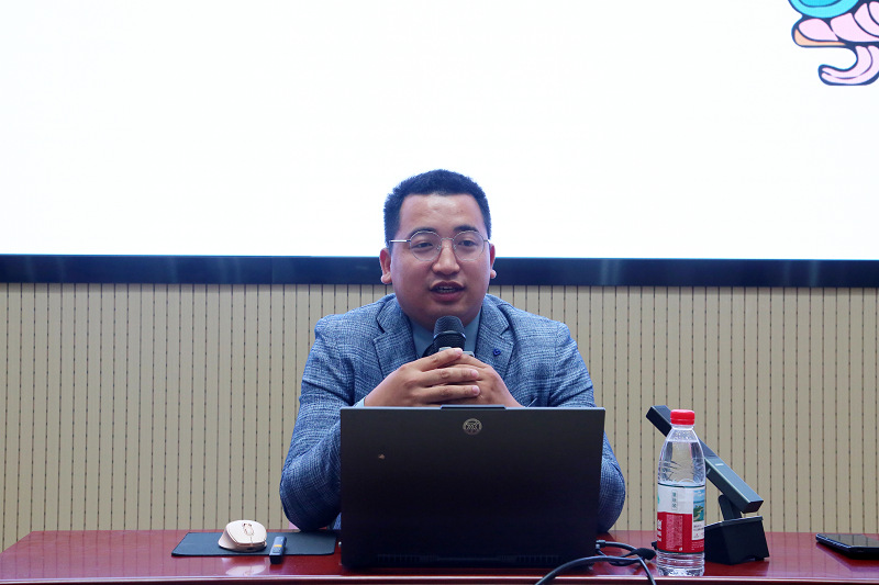 讲座中,冀以清老师以“中国寺观壁画的发展与审美”为脉络开展沉浸式美育教学。他梳理秦代萌芽、唐代巅峰、宋元成熟的历史演进,聚焦河南温县慈胜寺与山西永乐宫三清殿壁画,生动讲解千年艺术脉络,剖析其艺术价值。现场师生互动热烈,在沉浸式体验中感受传统艺术魅力,更为学生后续文创开发提供理论启发。