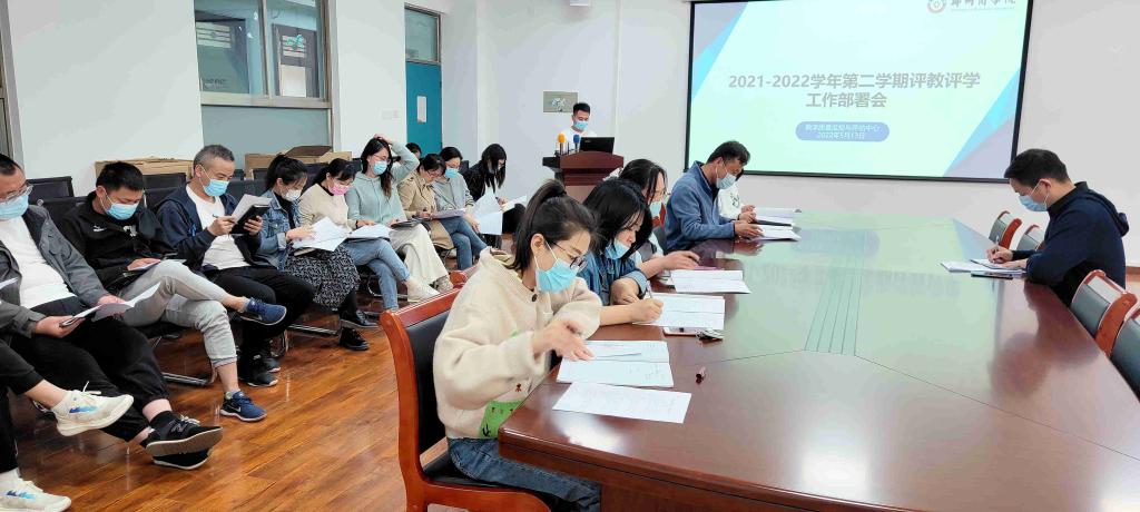 5月13日下午,质评中心在四号楼202会议室组织召开本学期评教评学部署会议,质评中心主任张晓辉、学务处、各院部教学秘书、行政秘书、相关职能部门负责人参加了此次会议。本次会议由质评中心王玉东老师主持。