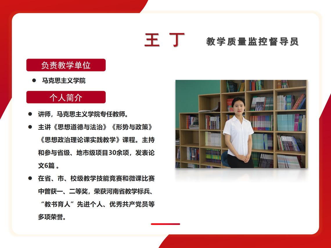教学质量监控督导员 马克思主义学院 王丁