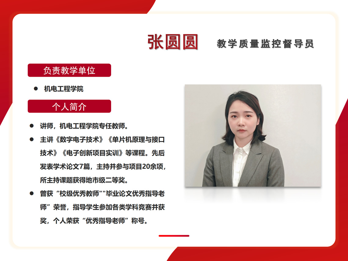 教学质量监控督导员 机电工程学院 张圆圆